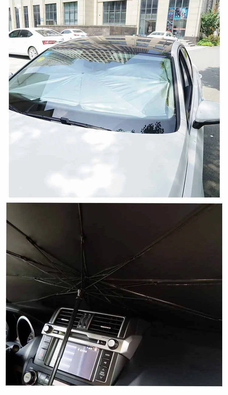 Guarda-sol de carro de alta qualidade. Proteção solar em dias ensolarados. Estrutura de aço para chuva e intempéries. Resistente a ventos fortes e impactos. Pau de guarda-sol grosso e longo. Fortalece a proteção solar, a proteção contra a luz e o isolamento térmico.