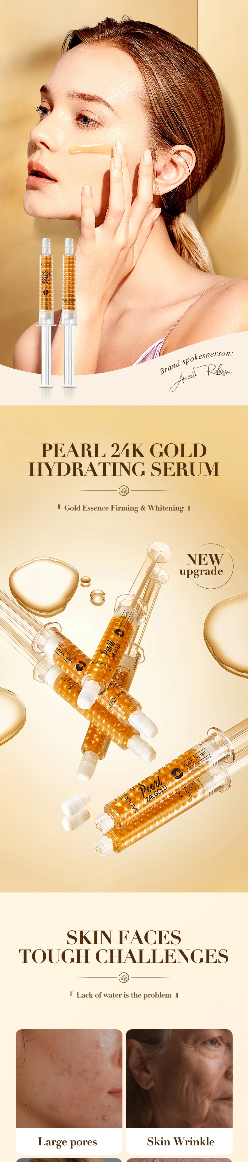 24K ouro pérola colágeno essência hidratante anti-envelhecimento clareamento facial aqua light essência