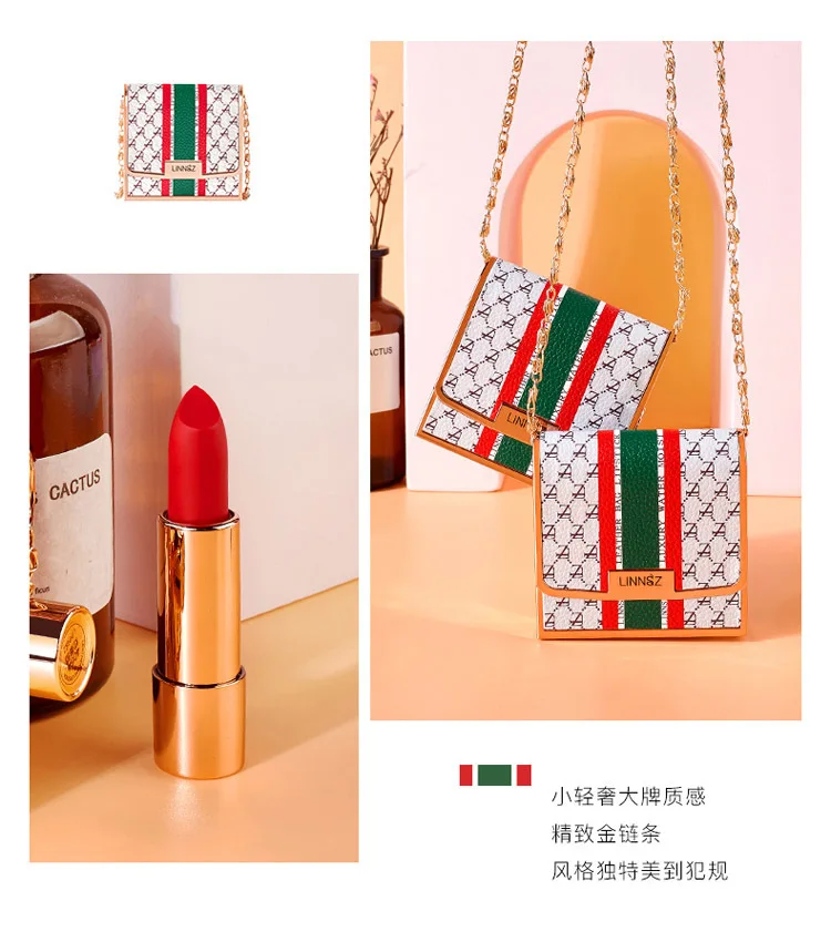 Leve luxo pequeno saco de couro batom 3 PCS pack, encontro 3 tipos de lábios vermelhos encantador sedução