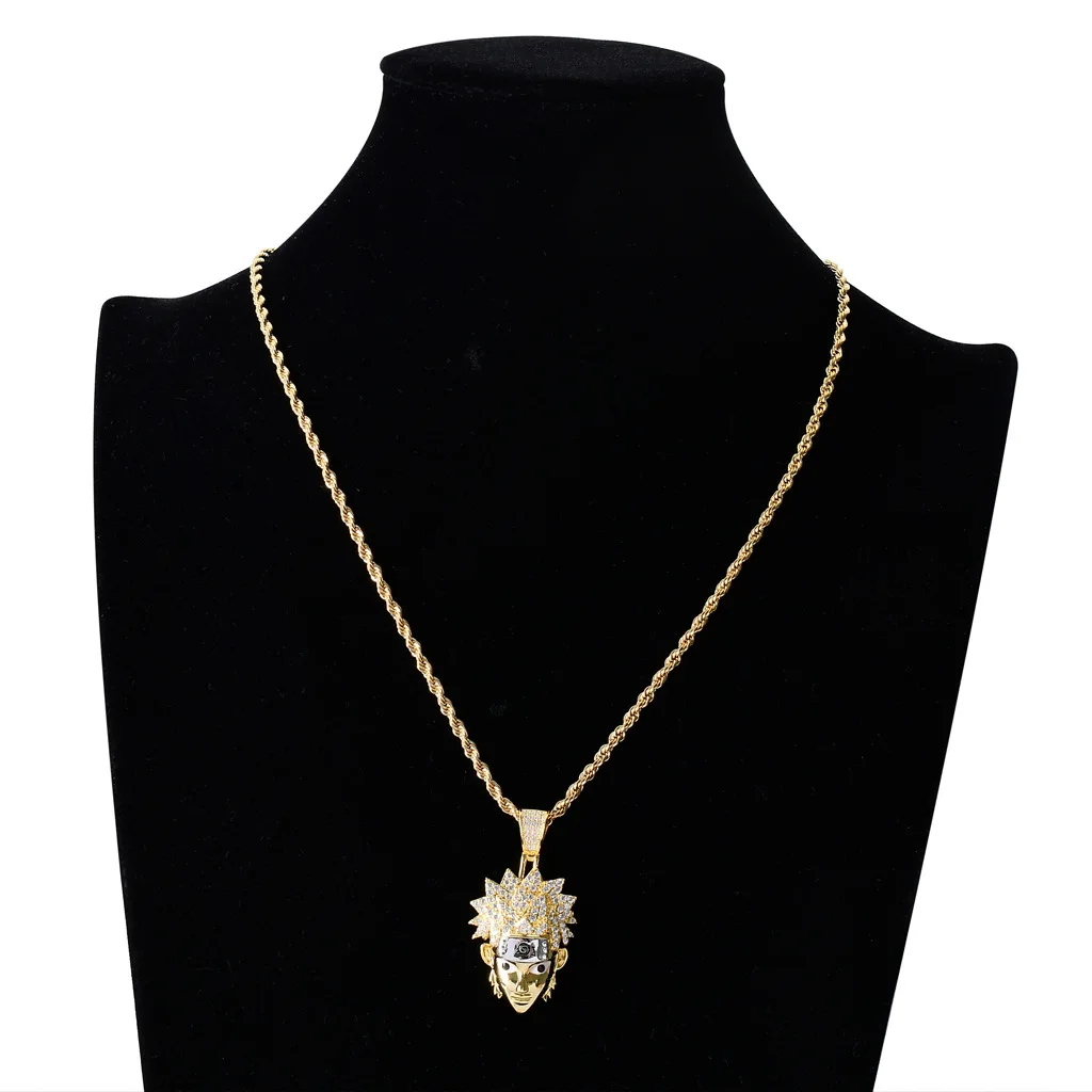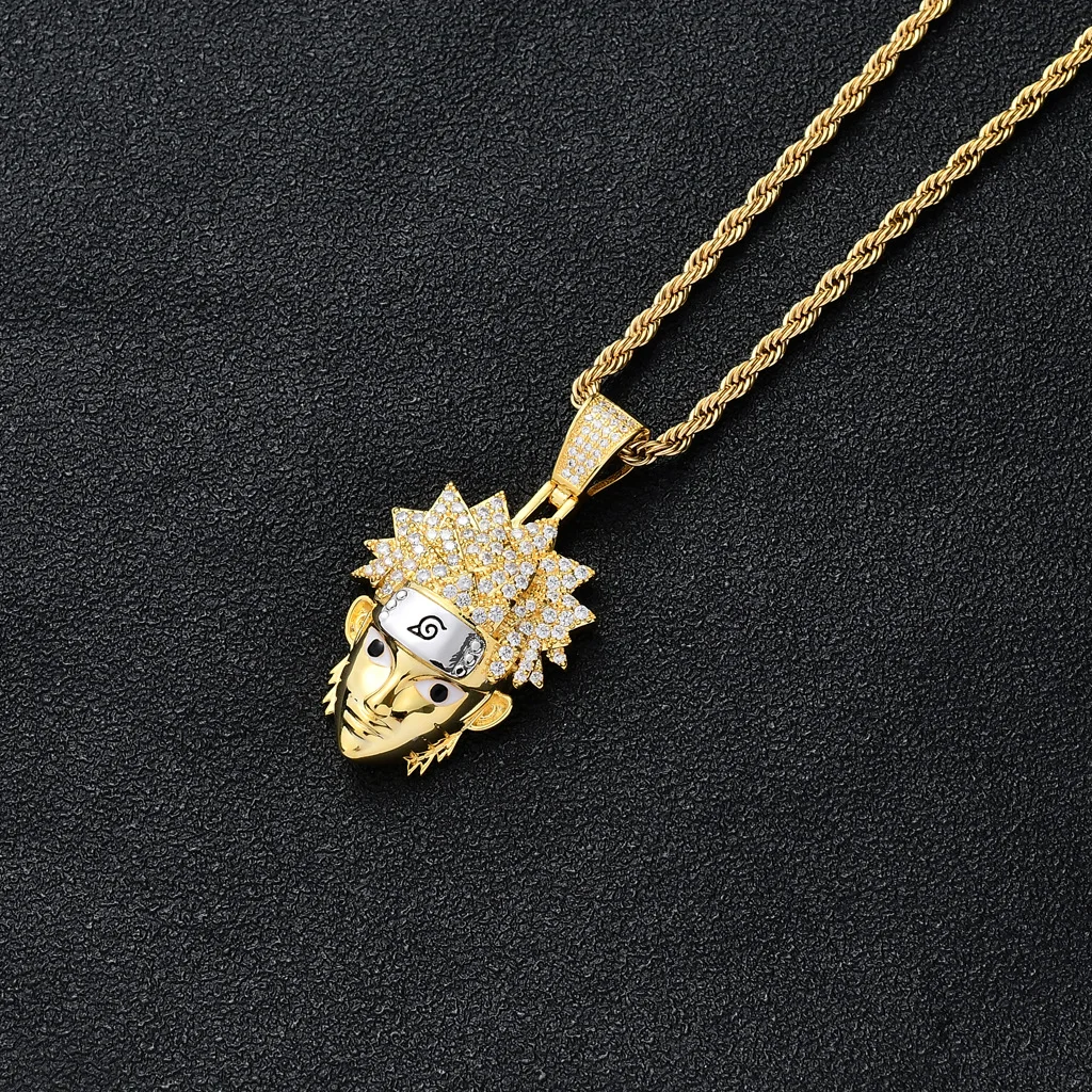Firebird ninja naruto pingente colar cobre com zircão ouro de ouro